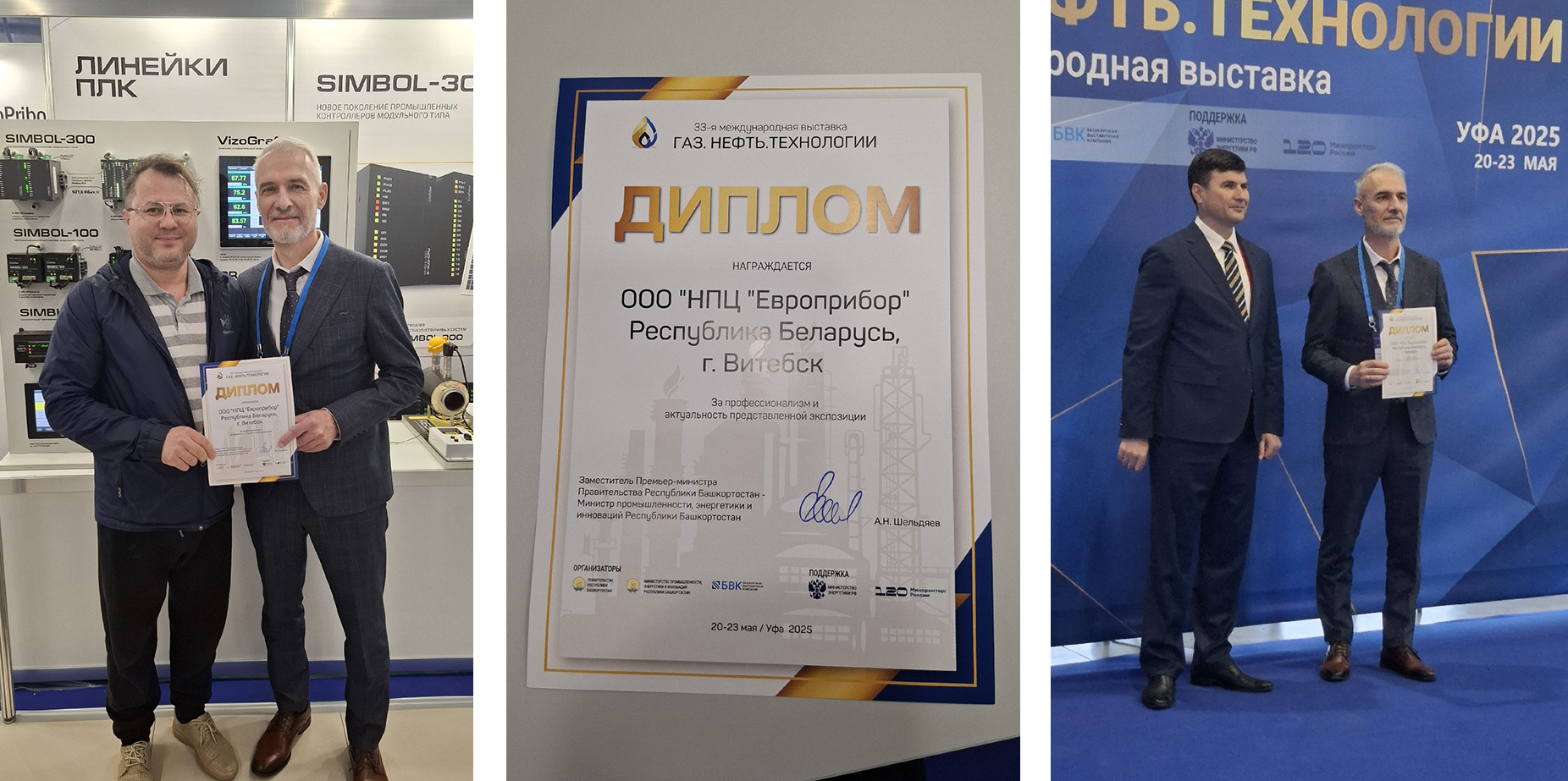 ДИПЛОМ ООО «НПЦ» Европрибор» за профессионализм и актуальность представленной экспозиции